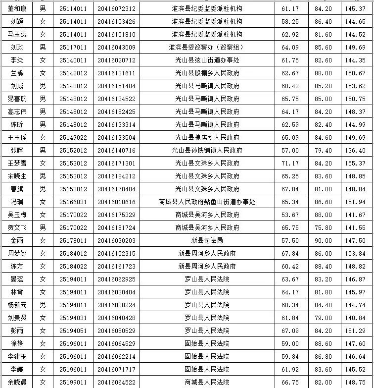 附件:河南省2022年統一考試錄用公務員(信陽市)第二批進入考察人員名單